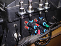 On the engine side of the EAS housing, you will see seven airline pipes entering the valve block, the ones we are interested in are the block of four, three of these may have colored sleeves. |